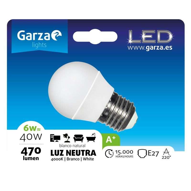 BOMBETA ESFERICA LED 6W E27 470LM LLUM NEUTRA GARZA 1UNI