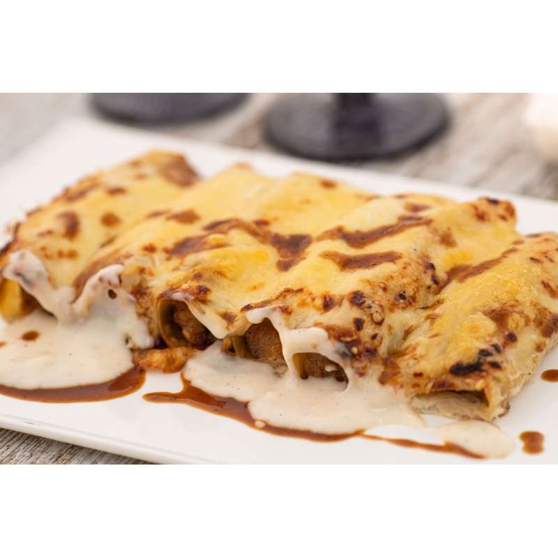 Ingredients: salsa beixamel (*llet sencera, *farina de blat, *mantega, midó pregelatinitzat, *proteïna de llet, sal, espècies i aroma), ceba, retall de pollastre, rostit de pollastre (carcanades de pollastre, tomàquet, ceba, pebrot verd, *vi ranci, oli d'oliva, sal i alls), retall de vedella, retall de porc, panxeta ibèrica, *llet sencera, *vi ranci, *formatge Emmental ratllat, oli d’oliva, midó pregelatinitzat, cervell de porc, *formatge Grana Padano (*llet crua de vaca, sal, quall, conservador: lisozima (*ou)), cervell de xai, *farina de blat, *pasta (sèmola de blat dur), aroma i vinagre.